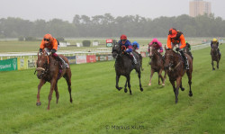 Rosenähe (Bayarsaikhan Ganbat) auf dem Weg zum Sieg im "Prix de Clairefontaine" am 26. Juni in München, Photo von Lajos-Eric Balogh |