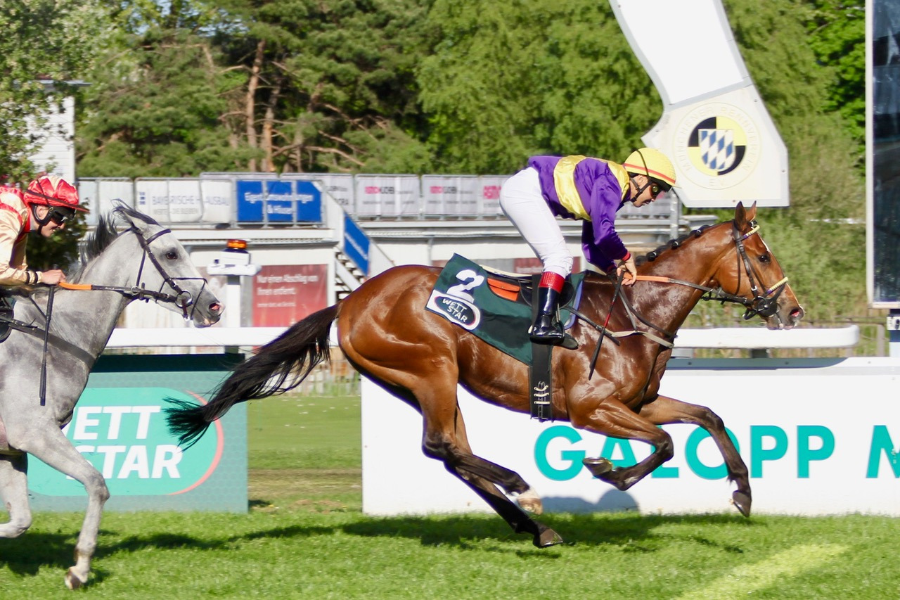 Okiedokie (Bayarsaikhan Ganbat) Sieger im "WETTSTAR - Aus Liebe zum Rennsport-Preis" München am 01.05.2025 | Photo von Murat Fischer |