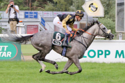 Rosenähe (Bayarsaikhan Ganbat) auf dem Weg zum Sieg im "Prix de Clairefontaine" am 26. Juni in München, Photo von Lajos-Eric Balogh |
